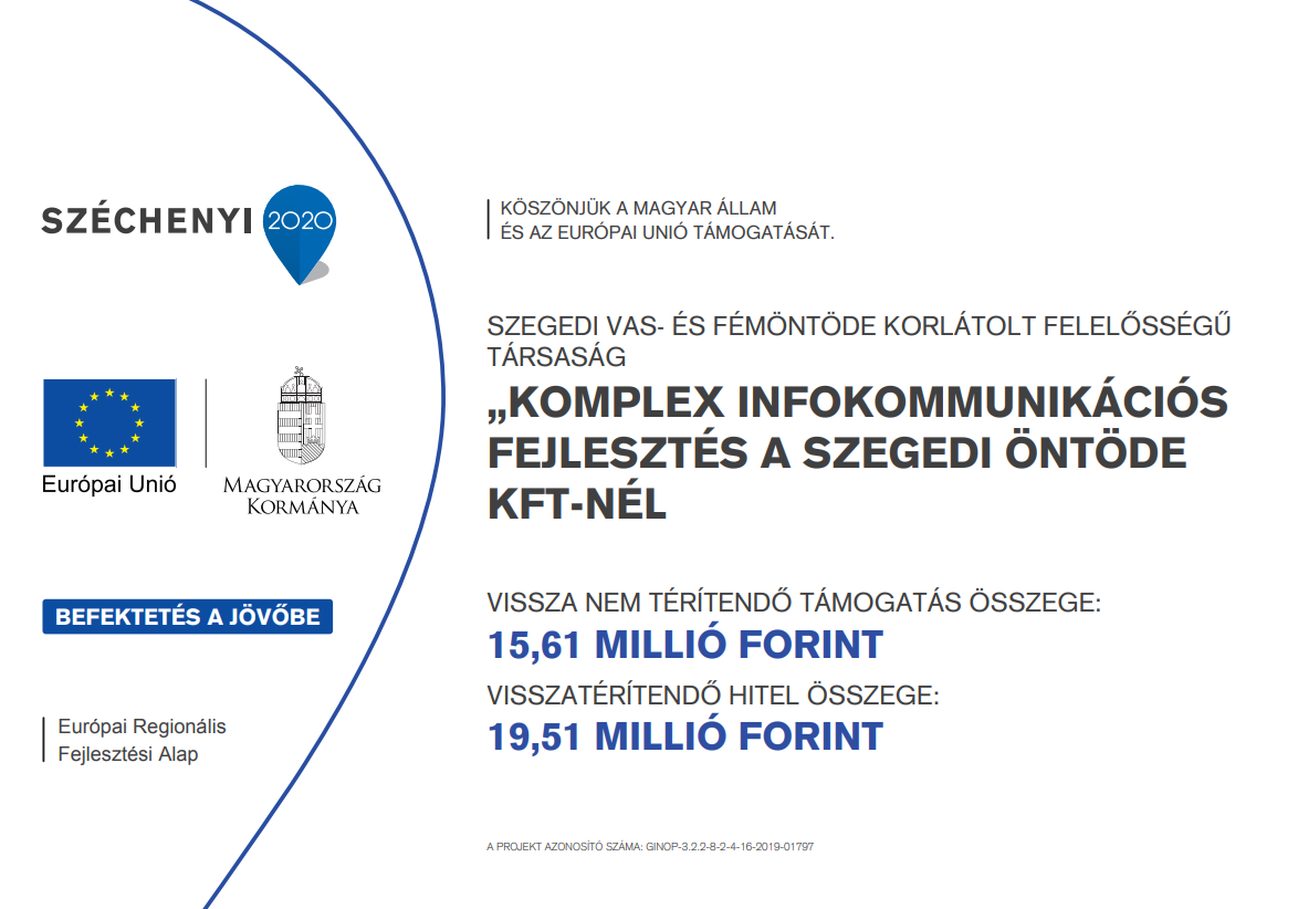 Projekt címe: „Komplex infokommunikációs fejlesztés a Szegedi Öntöde kft-nél”.
