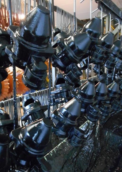 We use water-based, one component primers with dipping of castings.