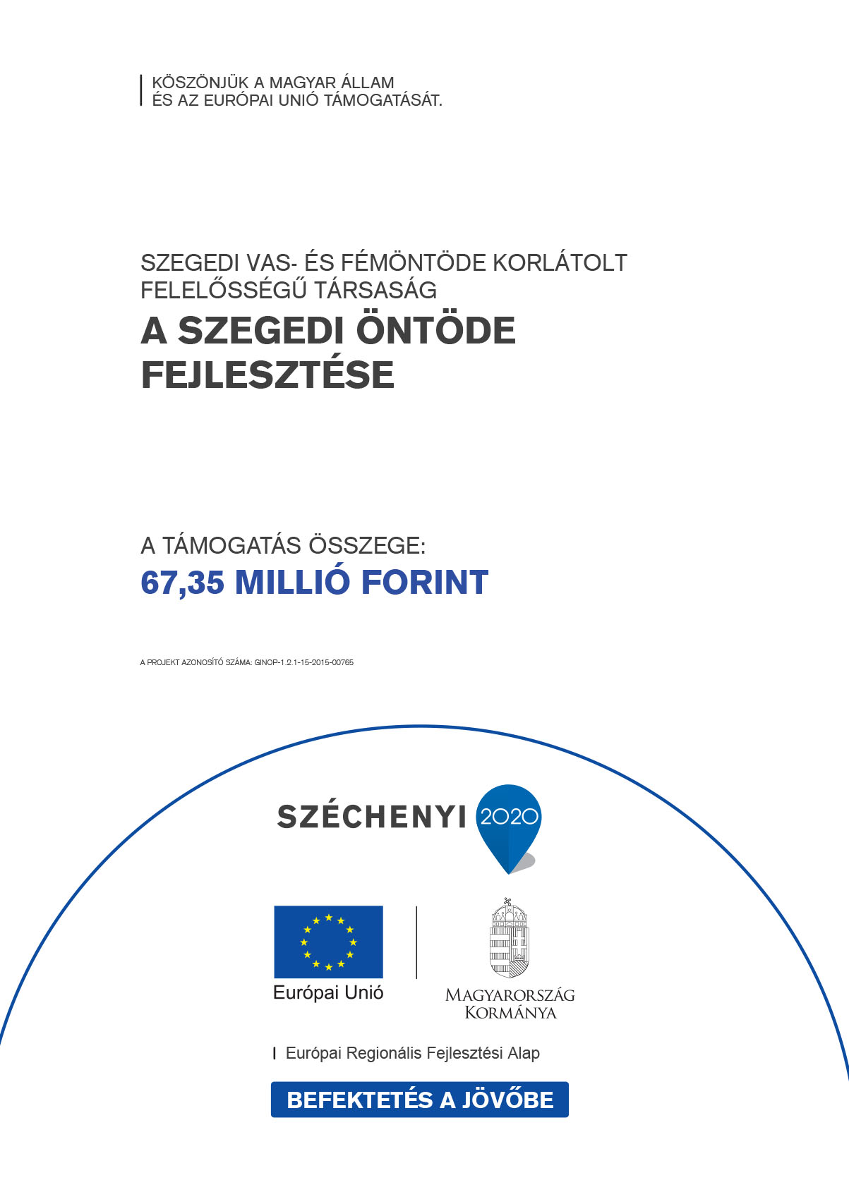Kedvezményezett neve: Szegedi Vas- és Fémöntöde Korlátolt Felelősségű Társaság